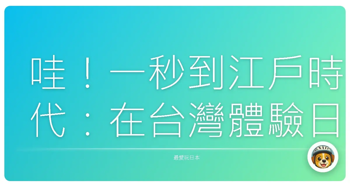 在台灣也能體驗到濃濃的日本味?沒錯!這次去了趟位於台灣的日本文化村,真的有種瞬間移動到江戶時代的錯覺,實在太有趣了!